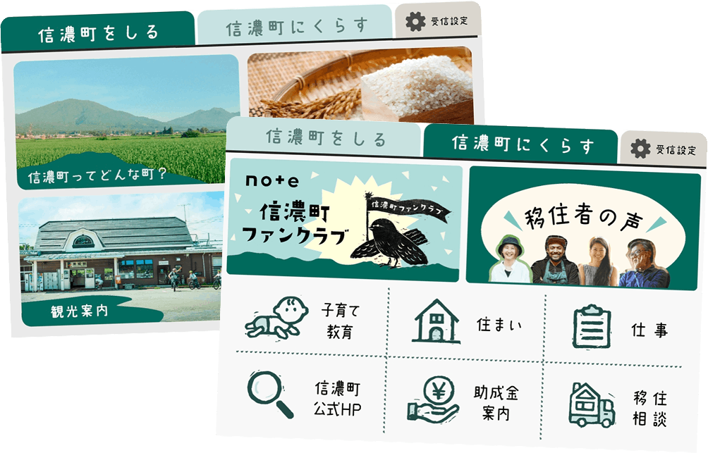 そんな想いを胸に、信濃町役場がはじめたコミュニティ活動です。LINEを通じて、イベント情報や地域での暮らし、ふるさと納税に関する情報にワンタッチでアクセスできるようになりました。ファン交流会や、地域マニア向けの部活動なども企画しています。